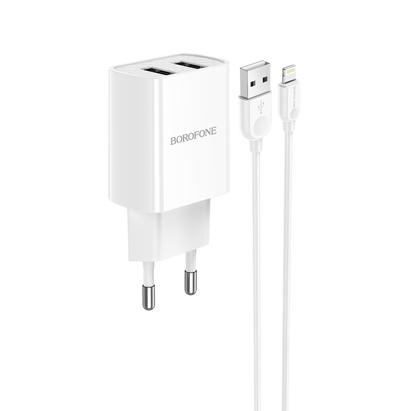 Сетевое зарядное устройство Borofone BA20A Sharp, зарядное устройство с одним USB-портом, штекером EU, комплект с кабелем Micro, выходной ток 2.1A. Материал: ABS + PC огнеупорный материал. Защита от нескольких цепей, интеллектуальная идентификационная микросхема, совместимая с 99% USB-устройствами для зарядки.