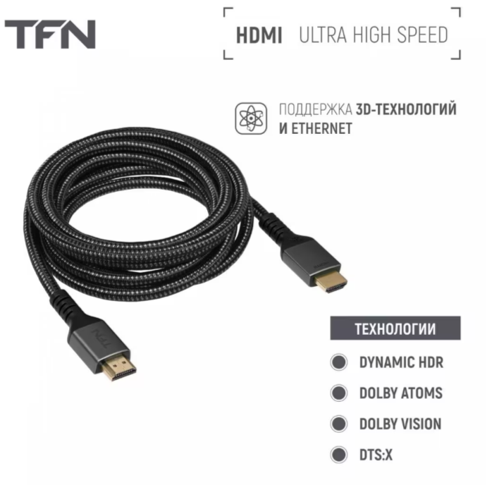 Кабель HDMI Ultra High Speed - идеальный выбор для телевизоров и игровых консолей последнего поколения, в том числе Sony Playstation 5, Sony Playstation 5 Digital Edition, Microsoft Xbox Series X, Xbox Series S. Кабель обеспечивает передачу видео до 10K@120Hz, 8k@60Hz, 4k@120Hz. Также, он оснащен Dynamic HDR - технологией, которая обеспечивает идеальные значения глубины, детализации, яркости, контраста, широкого динамического диапазона в каждый момент, каждой сцене, каждом кадре.