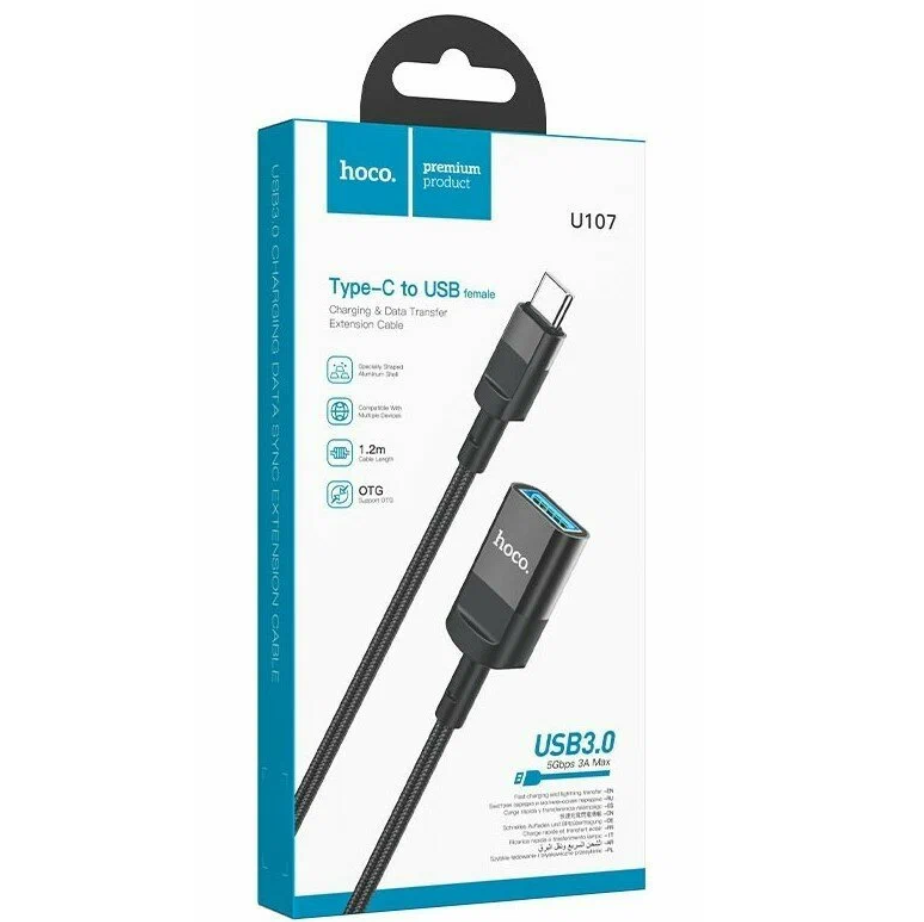 U107, кабель удлинитель для зарядки и передачи данных USB штекер на USB гнездо USB3.0, 1.2м, поддержка функции OTG, ток до 3A