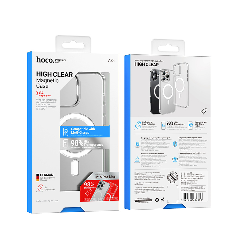 Накладка HOCO Primary Series Magnetic Protective Case for IP 16 Pro Max (AS4) Clear