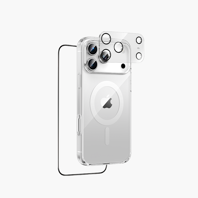 Чехол с защитой на 360°, полностью закрывающий переднюю и заднюю панели, обеспечивает защиту военного уровня. Кристально прозрачный корпус надолго сохраняет оригинальный стиль устройства, не желтея со временем. В комплекте с чехлом имеется защитное HD-стекло с 100% чувствительностью сенсора устойчиво к царапинам и отпечаткам пальцев, а также защитное стекло блока камер с AR-покрытием, которое обеспечивает защиту объективов камер и сохраняет качество съёмки в исходной высокой чёткости.