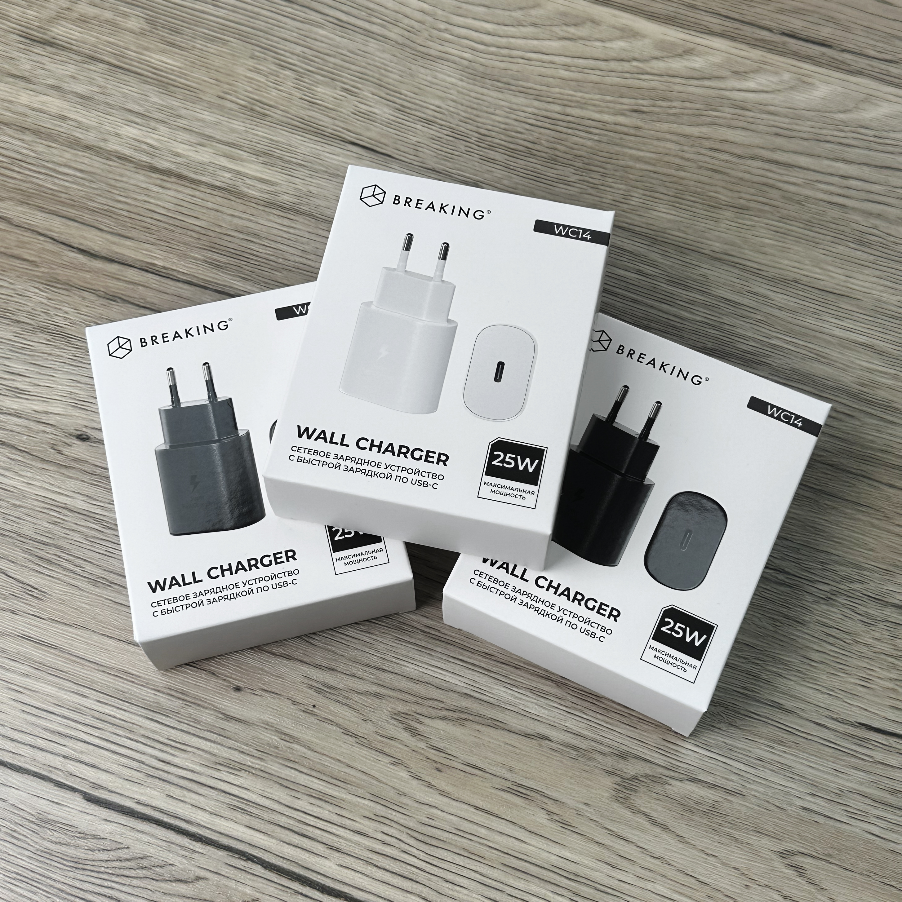 Сетевое зарядное устройство BREAKING WC14 выполнено из ударопрочного ABS-пластика. Модель рассчитана на входное напряжение 100-240V и обеспечивает выходную мощность до 25W и выходной ток до 3A. С одним разъемом USB-C. Модель поддерживает технологию быстрой зарядки Power Delivery, что позволит зарядить ваш смартфон на 75% всего за 30 минут. Устройство абсолютно безопасно в использовании; оно поддерживает функцию защиты от перегрузок по току, перегрева и короткого замыкания.