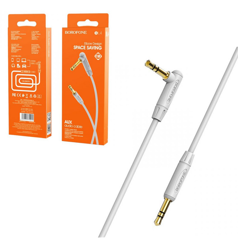 BOROFONE BL4 3.5мм jack на 3.5мм jack, аудио кабель AUX, 1м, TPE оплетка, угловой дизайн