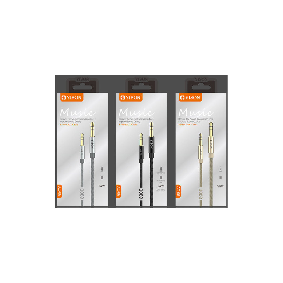 Аудиокабель 3.5мм AUX-AUX Yison AC-06 100см 100см для передачи аудиосигнала, предназначен для подключения смартфонов, планшетов, аудиоплееров и других аудиовоспроизводящих устройств.