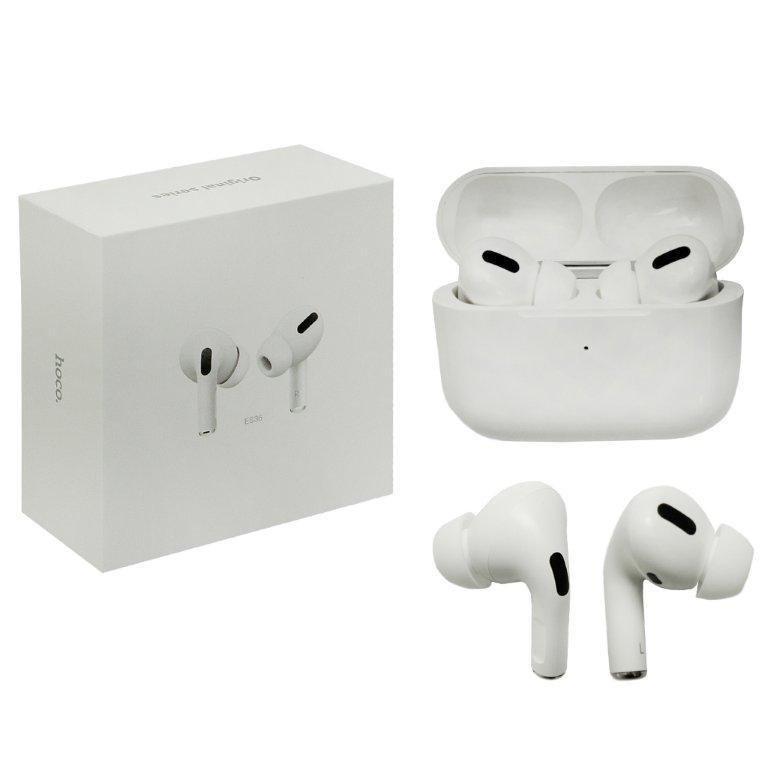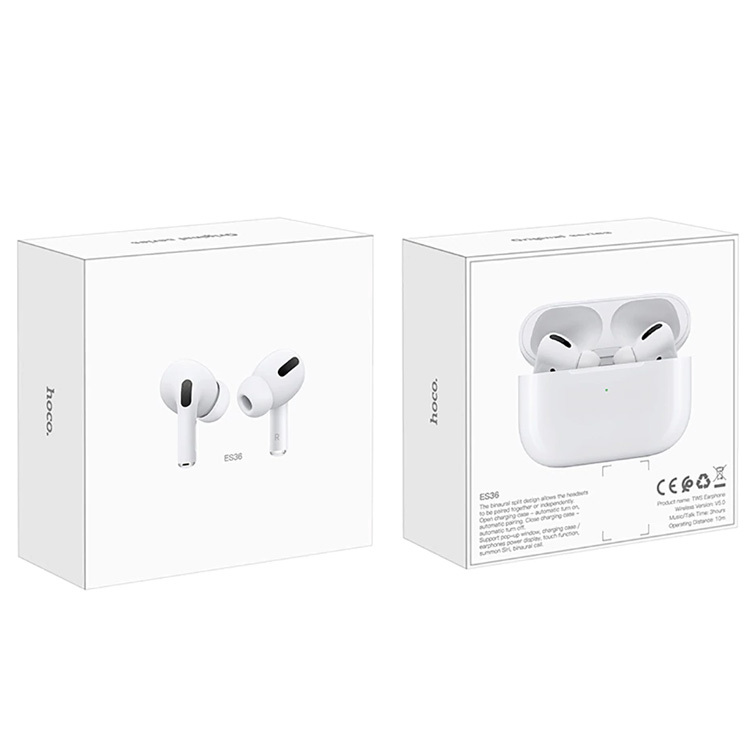 Hoco ES36 – качественные беспроводные наушники нового поколения с внутриканальной конструкцией амбушюр. Благодаря поддержке технологии TWS вы сможете использовать вкладыше как в паре, так и по отдельности. Управление воспроизведением, ответ на звонок или вызов голосового помощника осуществляется с помощью легкого прикосновения к сенсорной кнопке. Для удобного хранения и своевременной зарядки к ним в комплекте идет компактный бокс со встроенным аккумулятором.