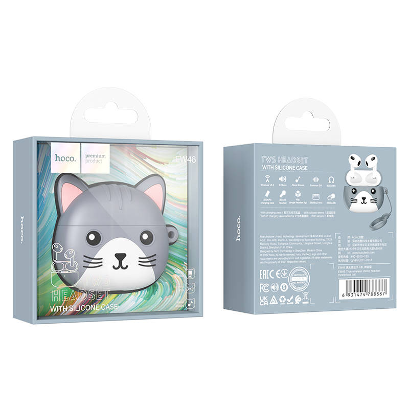 Наушники Hoco EW46 имеют стильный серый цвет и оснащены силиконовым чехлом с ушками и брелком Hoco. Чехол с ушками и брелок Hoco придают наушникам уникальный и забавный вид, делая их отличным подарком для детей и взрослых.