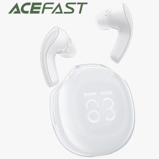 Наушники ACEFAST T9 - корпус получил эргономичную форму с футуристическим дизайном. Он защищен от влаги по стандарту IPX4. На лицевой поверхности наушников находится сенсорная панель управления. Модель оснащается 6-мм динамическим драйвером, высокочувствительными микрофонами и функцией пассивного шумоподавления ENC. Обеспечивается чистое и глубокое звучание, с хорошей детализацией частот. Реализована поддержка аудиокодеков SBC и AAC. Наушники ACEFAST T9 Crystal (Air) Wireless Earbuds синхронизируются с телефоном через модуль Bluetooth 5.0. Есть возможность их использования в стереорежиме (вместе) и моноформате (по отдельности). Регулировка уровня звука осуществляется через приложение. В комплекте идет зарядный кейс из полупрозрачного силикона. На нем размещается светодиодный дисплей, на котором отображается информация об оставшейся емкости аккумулятора в процентах. Автономность до 30 часов. Именно столько продержатся наушники при использовании зарядного кейса. Одного заряда хватает на 7 часа воспроизведения музыки и 3 часа в режиме разговоров. Время зарядки гарнитуры – 1 час, а футляра – 2 часа через разъем USB Type-C.