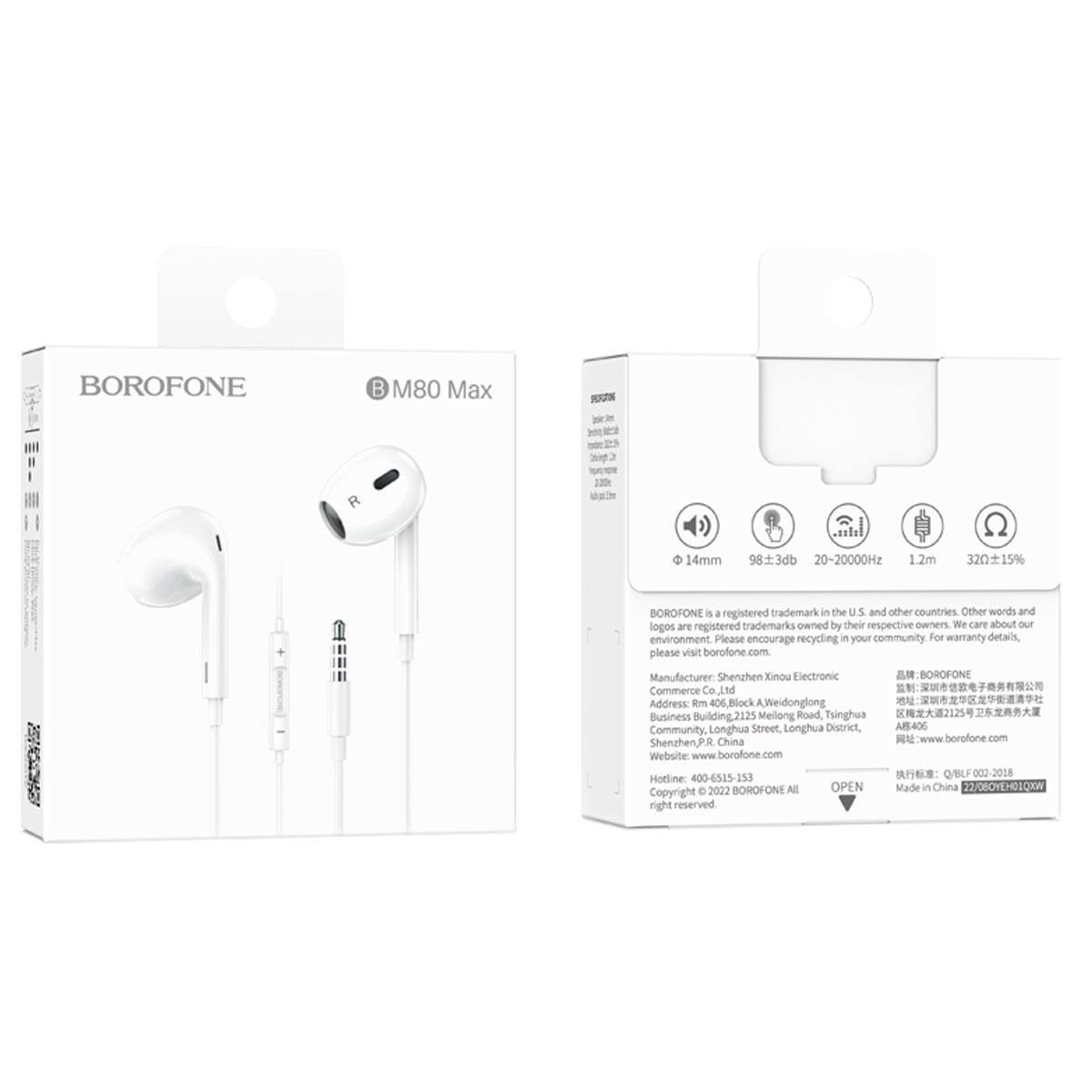 Проводные наушники Type-C Borofone BM80 Max с микрофоном, длина 1.2 м (белые)