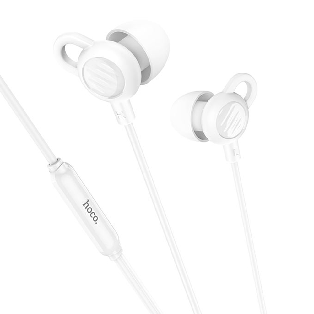 Проводные наушники для сна с микрофоном, Hoco M89, в которых удобно будет не только заниматься спортом, но и благодаря узкому корпусу, заснуть под релаксирующую музыку.