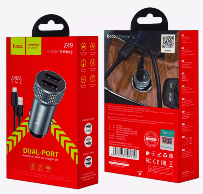 Автомобильное зарядное устройство Hoco Z49 – ваш лучший спутник в любой, даже самой длительной поездке. Устройство вставляется в прикуриватель и обеспечивает стабильную подзарядку смартфона или планшета благодаря стабильной силе тока 2.4А. АЗУ оснащено двумя выходами USB, что позволяет заряжать два устройства одновременно. Элегантный дизайн и компактный размер позволяют вписаться в интерьер любого автомобиля. Поставляется в комплекте с кабелем USB - Micro USB длиной 1м.