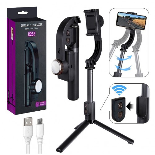 Cтабилизатор для телефона ручной со штативом с пультом с подсветкой 360 градусов Gimbal Stabilizer R25S. Стабилизатор монопод для смартфона - электронный ручной монопод для смартфонов, с помощью которого мобильный телефон превращается в настоящую профессиональную экшн-камеру. Благодаря встроенному высокоточному гироскопу, датчикам и бесщеточным двигателем Вы получите стабильные, плавные кадры, как в горизонтальном, так и в вертикальном режиме. Bluetooth-кнопка на корпусе стабилизатора позволит управлять процессом съемки без касания к смартфону совместим со всеми современными телефонами на базе IOS или Android.