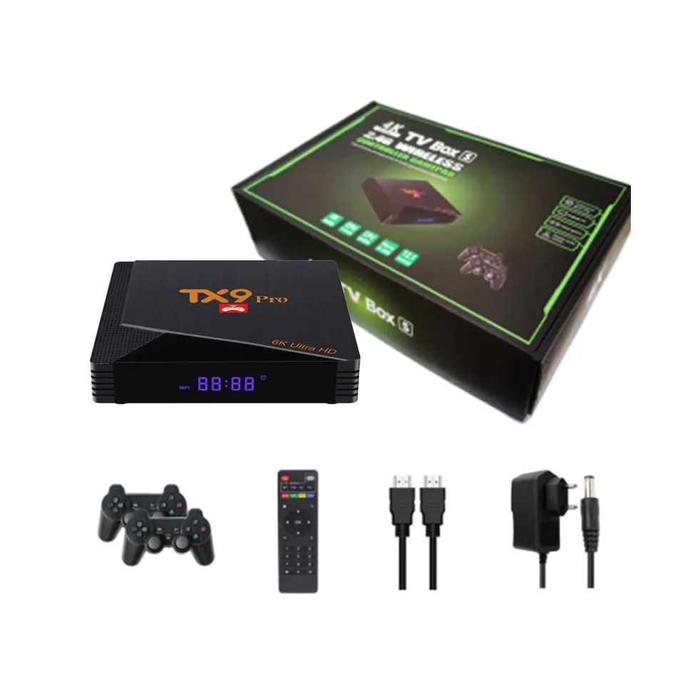 Описание: TX9 pro - это современная игровая приставка, которая позволит вам наслаждаться играми от ретро-консолей на любом телевизоре. Она поддерживает архитектуру 8, 16, 32 и 64 бит, а также новые эмуляторы. Кроме того, TX9 pro имеет возможность установки мобильных игр и обновления программного обеспечения.