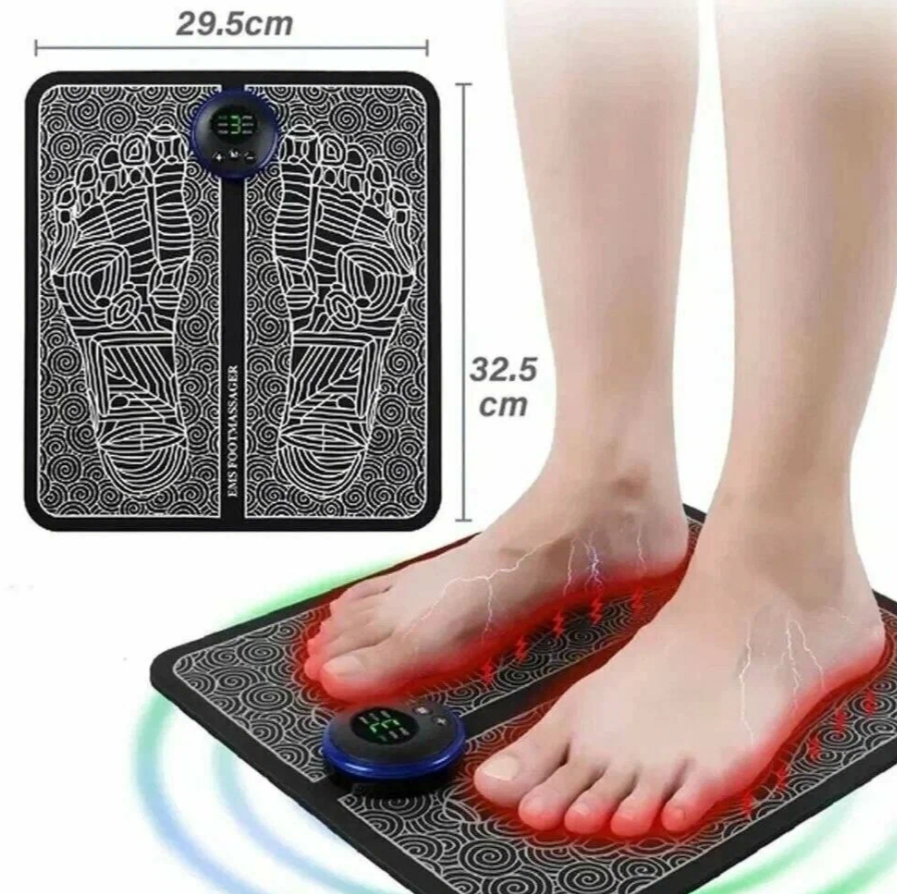 EMS FOOT MASSAGER – массажный коврик-миостимулятор для стоп, воздействующий на нервные окончания, находящиеся на подошве при помощи слабых токов. Электрически импульсы, поступающие от коврика помогают расслабить напряженные мышцы, улучшить кровообращение и избавиться от боли в ногах.