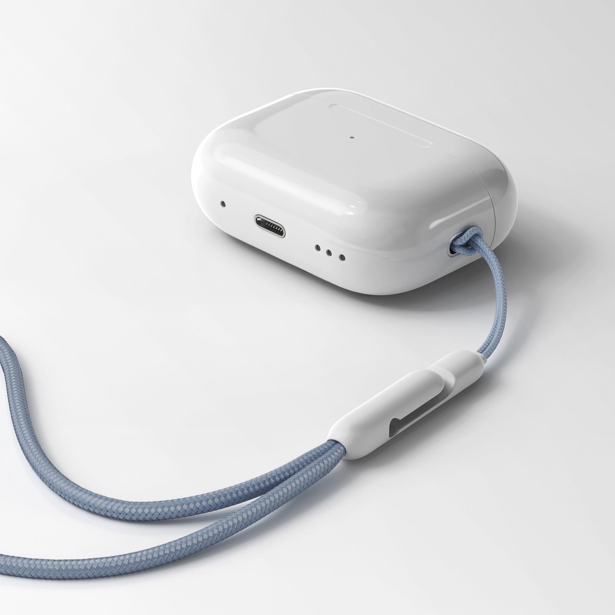 Помимо беспроводной зарядки MagSafe и Qi кейс наушников оснащен металлической петлёй для шнурка. Сам шнурок, в лучших традициях BREAKING, есть в комплекте.