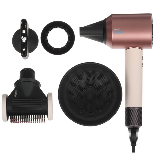 Прибор имеет 5 насадок, включая ту, что необходима для деликатной сушки, разглаживания, а также концентратор для направленной укладки. Интеллектуальная система распознавания насадок поможет прибору «разобраться», какой тип прически требуется. Для безопасности работы фен автоматически выключается в положении лежа. Режим защиты головы не позволяет Dyson Supersonic Nural HD16 «разгонять» температуру выше 105 °. Прибор защищен от перегрева. Вес фена составляет всего 508 г., поэтому руки не устают от укладки.