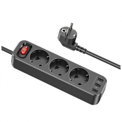 3 розетки, высокая мощность 4000 Вт (вилка: соответствует немецким / французским / европейским стандартам). 3 выходных порта USB-A: 5 В / 2.4A . Шнур питания: L = 1,8 М; 1,5 квадратных провода из ПВХ. Размер: 197 * 58 * 40 мм, общий вес: 421 г