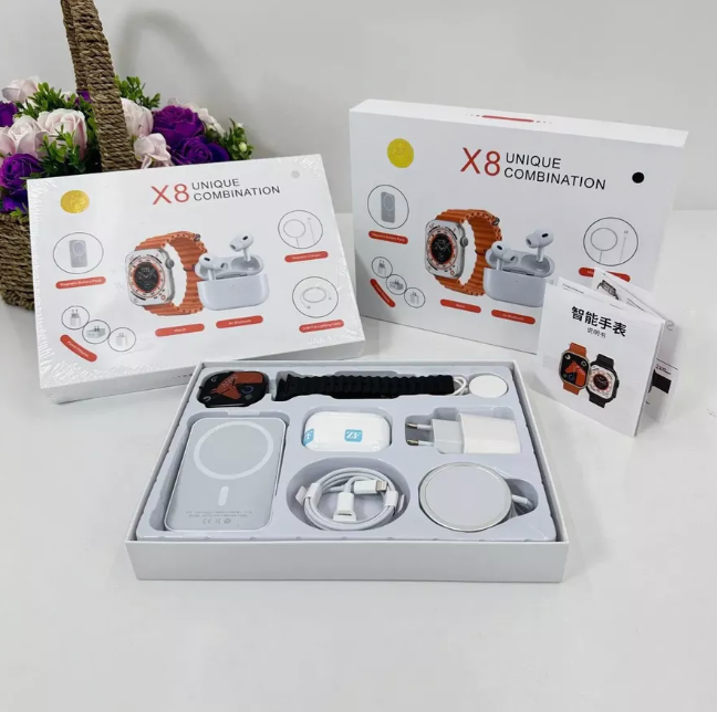 В набор входит 6 самых актуальных предметов (дополнений для телефона) для комфортного и удобного пользования. SMART WATCH . Процессор обеспечивает плавную работу анимации умных часов. Большой экран с насыщенной цветопередачей и отзывчивым сенсором, который радует глаз! Картина максимально полноэкранная! Эти часы на руку взяли все лучшее от Xiaomi, Apple, Samsung и Huawei. Беспроводные наушники AirPods Pro Lux (Copy). Для ценителей первоклассного звучания! Потрясающее качество звука и мощные глубокие басы!100% совместимость с iРhоnе/Аndrоid/ПК- Всплывающее окно при подключении, как у оригинала.- Оригинальные гравировки на наушниках и боксе. Гравировка на пленке.- На каждом АirРоds, кейсе и зарядном кабеле - четкая гравировка серийного номера.- Отображение заряда каждого из наушников и кейса.- Управление - сенсоры (легкое нажатие/тапы), без сбоев. Переключение треков вперед/назад, возможность поставить на паузу, включить, ответить на звонок, переключение режимов, как на iРhоnе так и на Аndrоid. Внешний аккумулятор (с Анимацией при подключении). Компактный внешний аккумулятор MaсSafe Battery Pack подключается к устройству одним щелчком. Он небольшой, и с его помощью легко заряжать устройства прямо на ходу. Магниты фиксируют аккумулятор в нужном положении для безопасной и надёжной беспроводной зарядки. Она начинается автоматически: аккумулятор не нужно включать и выключать. Беспроводная зарядка MaсSafe. Это магнитная шайба, которая крепится к смартфону сзади и заряжает его примерно в два раза быстрее обычной беспроводной зарядки. Более того, ее скорость сопоставима с тем, что предлагает обычная проводная зарядка. Кабель USB TYPE С - Lighting блок 20W зарядное устройство для iPhone и Android USB -C TYPE Набор 6 в 1 - это Отличный подарок для себя или для любимого человека!