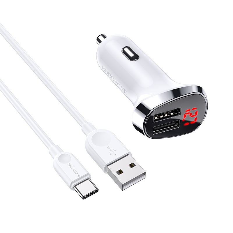 BOROFONE BZ15 Auspicious, автомобильное зарядное устройство с цифровым дисплеем, двумя USB портами, набор с кабелем для USB-C.