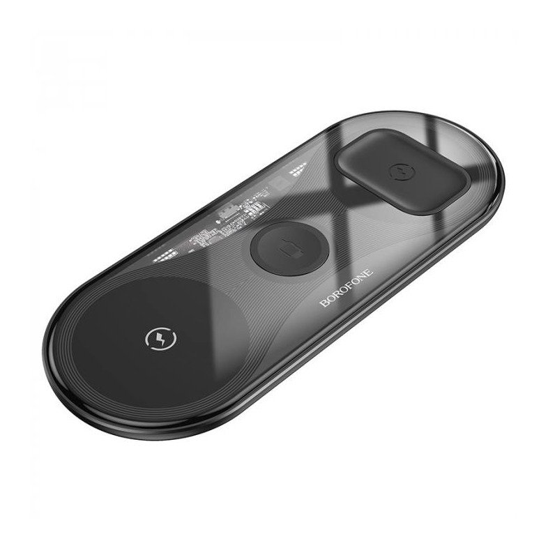 Настольная зарядная станция BOROFONE BQ19 - это надежный и модный аксессуар на данный момент. Магнитная док станция подходит для андроид и IOS. Для всех устройств, поддерживающих функцию беспроводной зарядки. Беспроводное зарядное устройство может использоваться для зарядки сразу нескольких устройств, Мощность зарядки распределяется на все заряжаемые устройства, и если нужно быстро зарядить смартфон, наушники или часы, то рекомендуется заряжать только 1 устройство на станции. Магнитная зарядка для телефона, смарт часов и гарнитуры создана компактным изделием, оно не займет много места на столе, а благодаря стильному дизайну украсит ваше рабочее место. Безопасность на высоком уровне, ведь у нее защита от перегрева и короткого замыкания. Выполнена портативная зарядка из высококачественного, безопасного пластика ABS, не имеющего постороннего запаха и гладкого на ощупь.