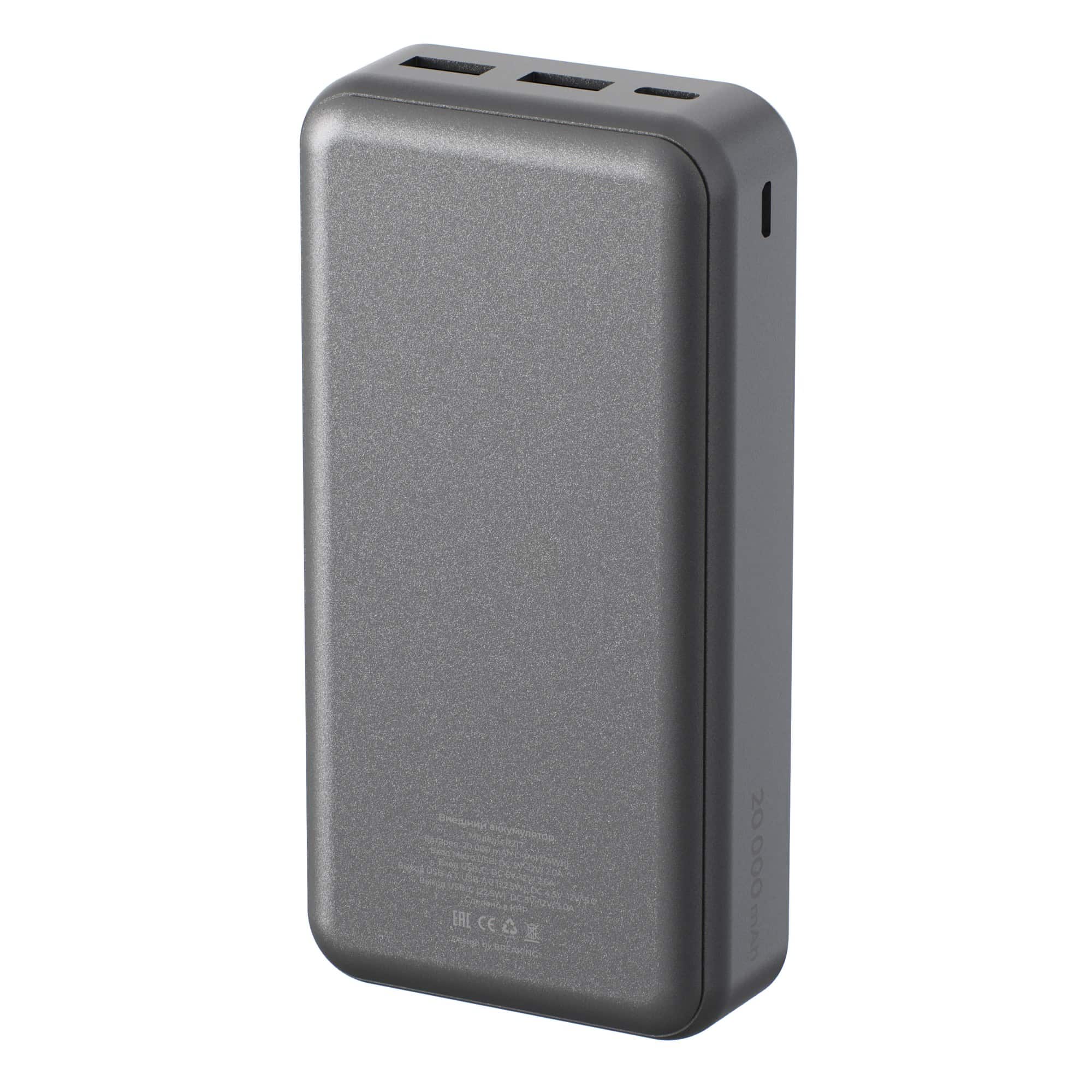 Внешний аккумулятор Breaking P217, 2USB-A + USB-C, 20 000 mAh, 3.0A, 22.5W, PD, LED (Графит)